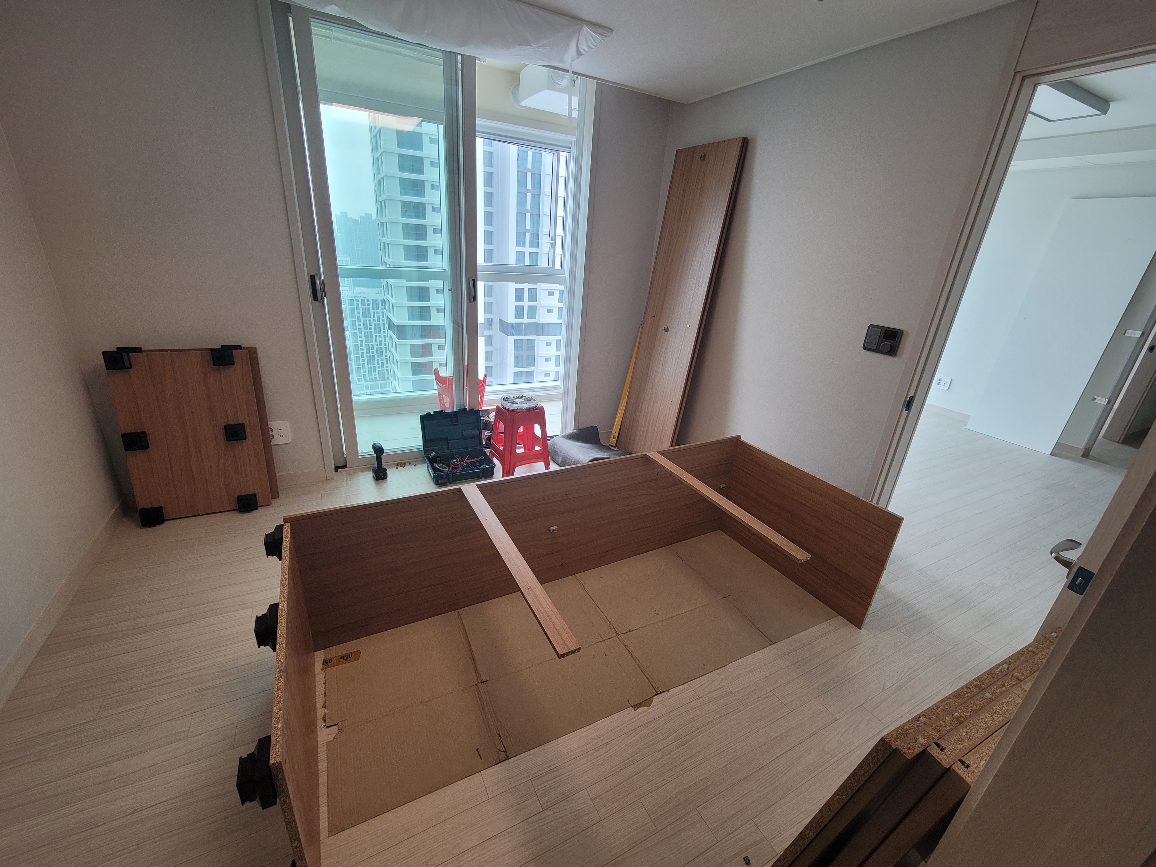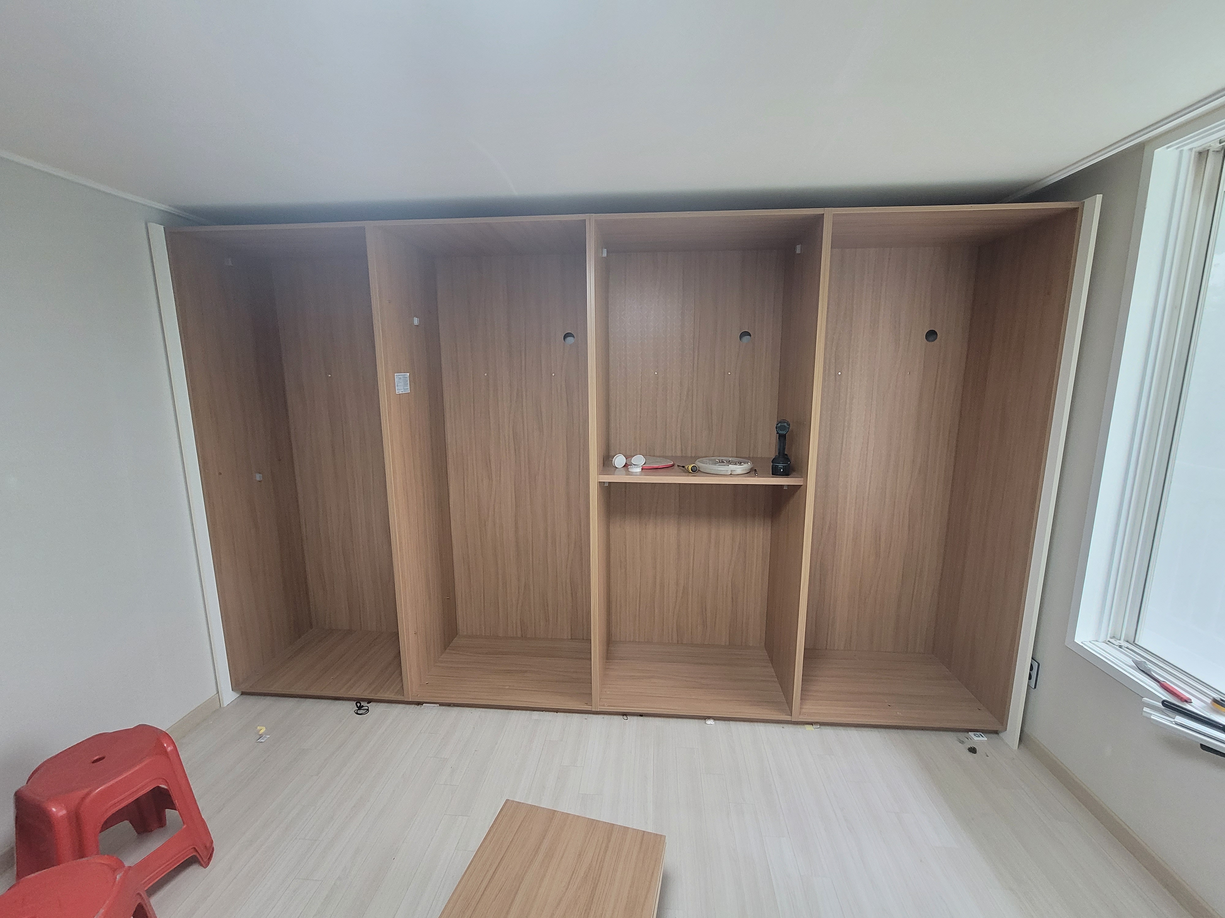 분해했던 붙박이장은 다시 튼튼히 재조립합니다.